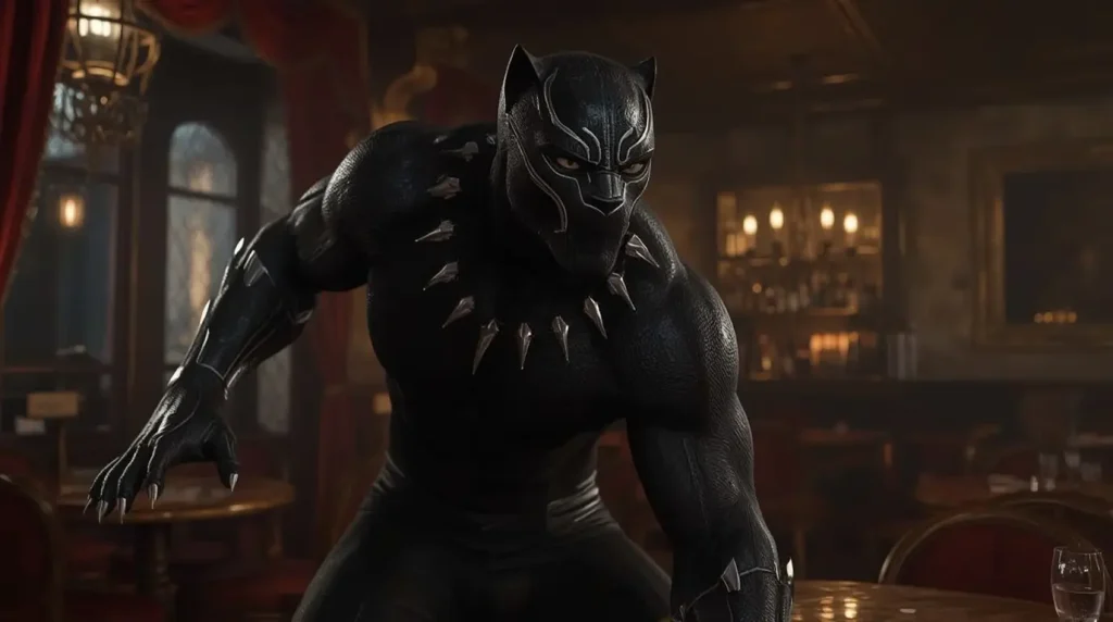 🏃🏿♂️ Character Movement: Our first real look at Black Panther (Azzuri version, not the modern variant) and he’s gliding and flipping like he’s on a rooftop, but wait until he drops into the Kickstarter-level everyday action of the game. The dude vaults a bar table, spins off a wall, and rolls to his feet without missing a single animated frame—seriously cool.